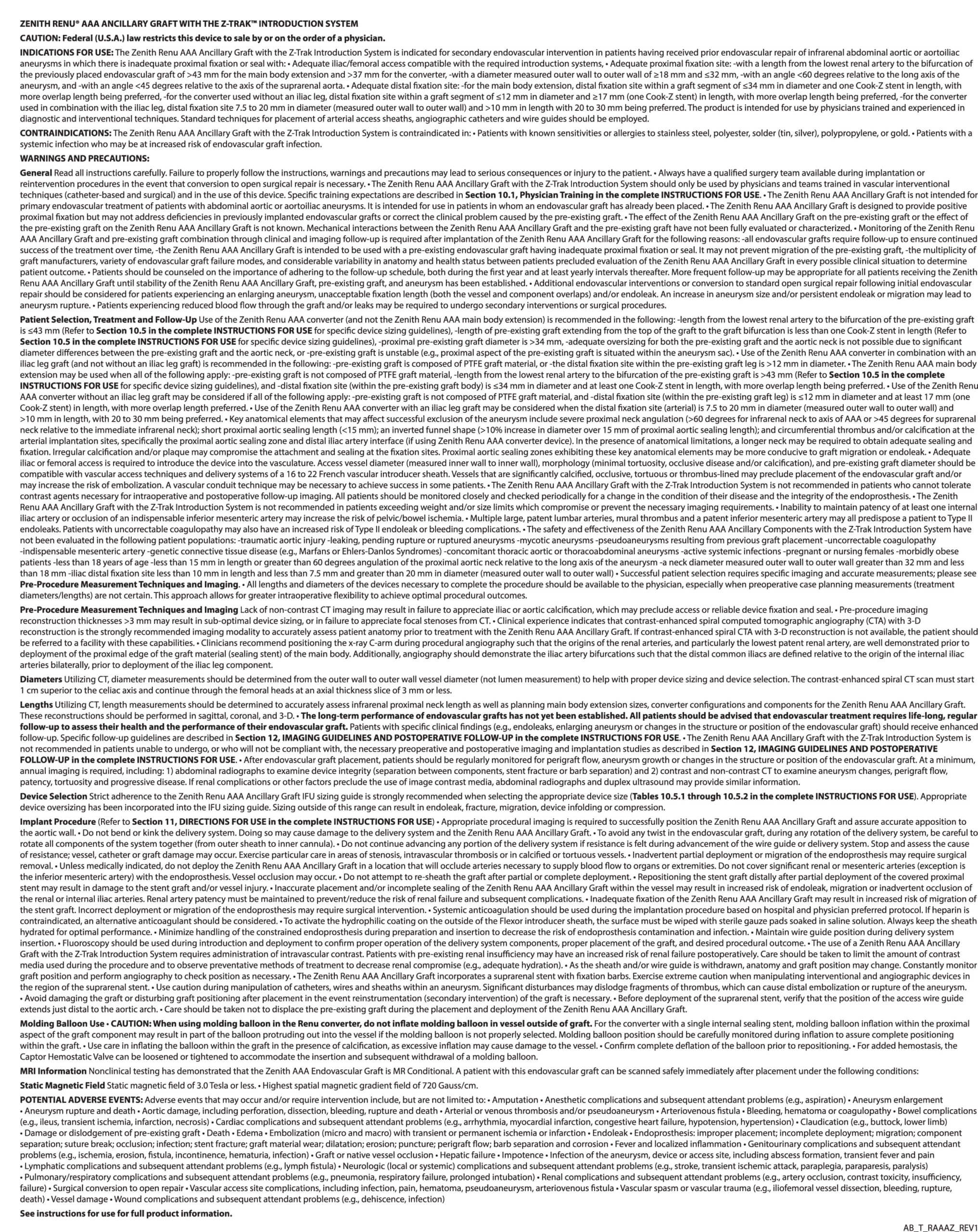 Maximize your seal in the abdominal aorta with a variety of disease-specific Zenith endovascular grafts. View each product’s indications for use, component ordering information, introduction system, and graft specifications.