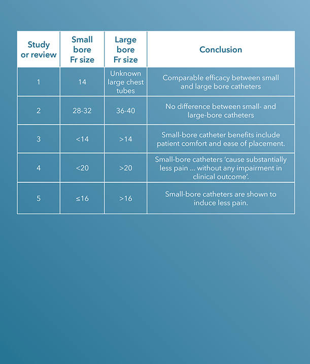The study concludes that “abundant literature supports a paradigm shift towards the more routine use of small-bore chest tubes for managing pleural disease.”3