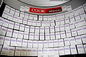 Last week, we had an event at our offices around the globe for pancreatic cancer awareness month. Many of our employees wore purple in support of the event, and at our Winston-Salem office more than 200 people filled out cards to display stating why they chose to participate. Many of these cards were in honor or memory of someone they knew who has been affected by this terrible disease.