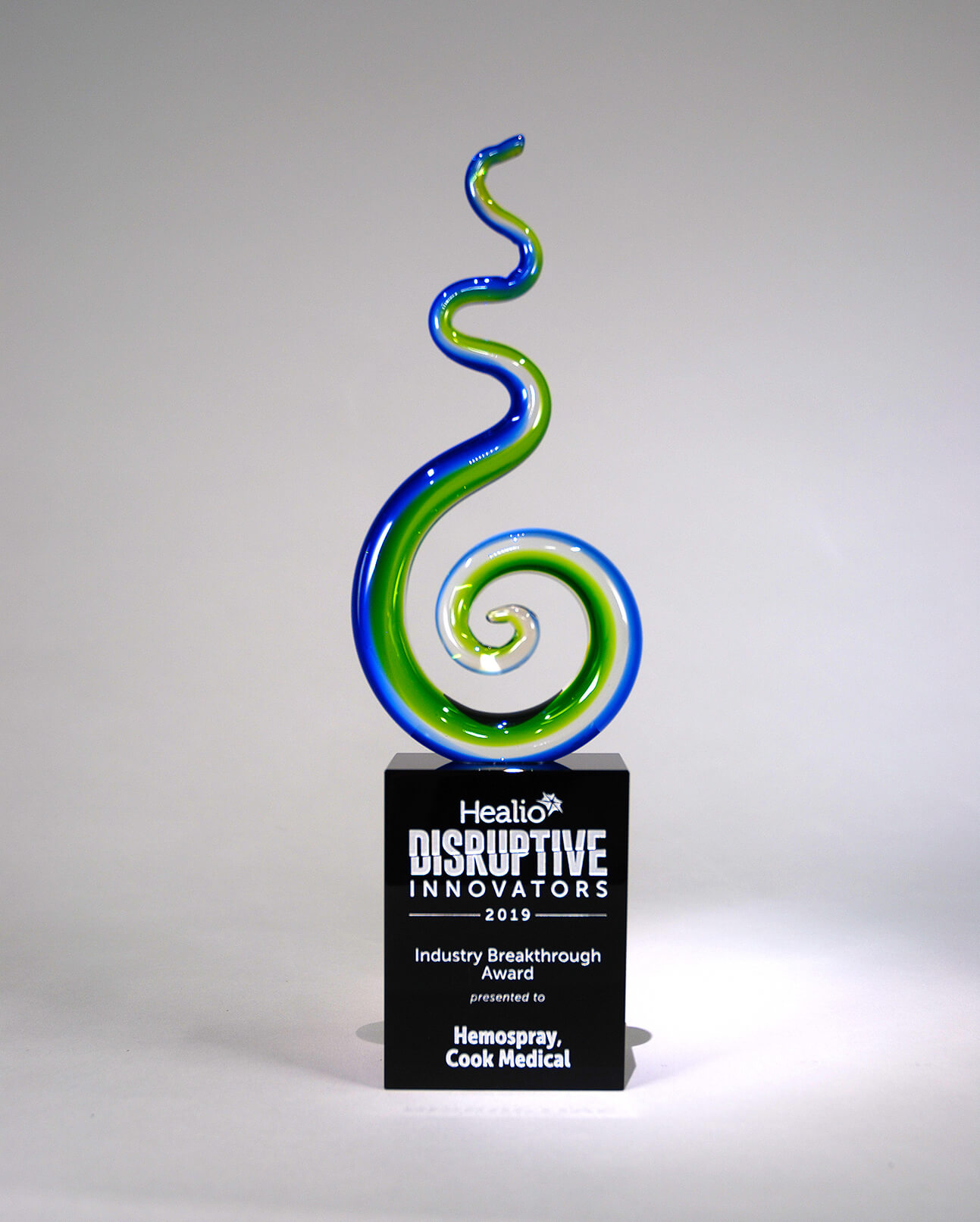 Bloomington, Ind. — Cook Medical’s innovative Hemospray® product received the 2019 Healio Disruptive Innovators Award in the Industry Breakthrough category. Healio, a healthcare news and education organization, presented the awards on October 27 at the American College of Gastroenterology Annual Scientific Meeting in San Antonio, Texas. The award is voted on by some of the world’s leading hepatology and gastroenterology professionals.