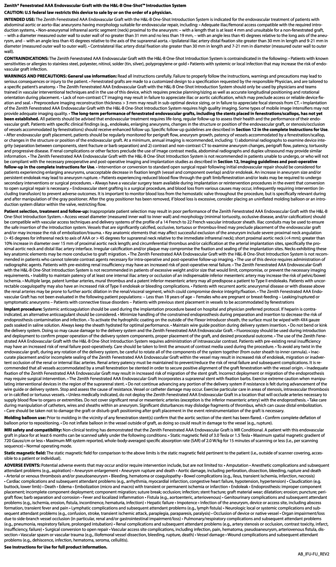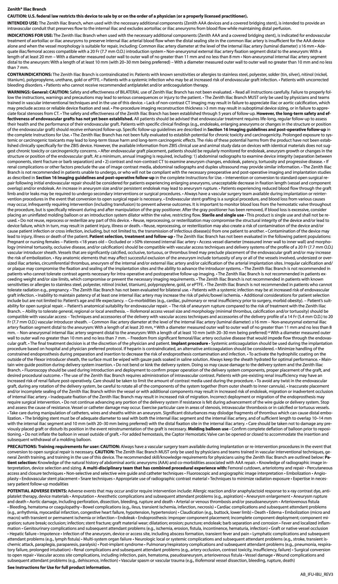 Zenith Flex, Zenith Fenestrated, and Zenith Iliac Branch help prevent abdominal aortic or iliac artery aneurysms from growing or rupturing (a rupture is when the aorta bursts and causes life-threatening internal bleeding). Additionally, these devices preserve flow through the aorta and the internal iliacs.