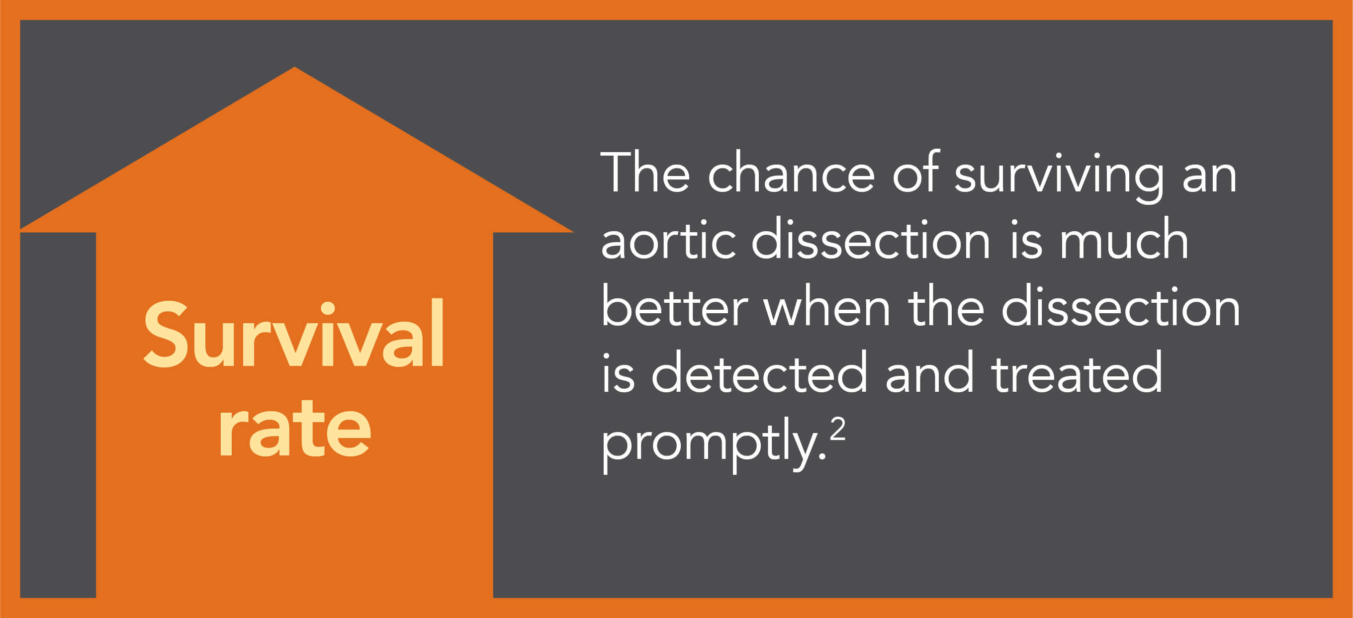 There are two types of aortic dissections: an acute aortic dissection and a chronic aortic dissection. An acute aortic dissection is a potentially life-threatening condition that requires diagnosis immediately after symptoms appear in order to get the right treatment. A chronic aortic dissection is an aortic dissection that has been present for a longer period of time. However, if blood continues to flow through the tear between the layers of the aorta, it could form an aneurysm.