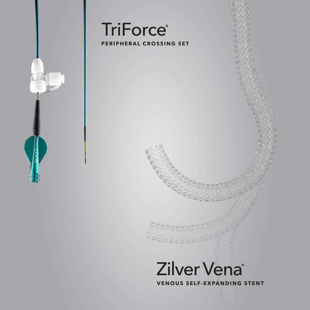 Iliofemoral venous outflow obstruction may be due to inadequate recanalization of a previous deep vein thrombosis (DVT) or external compression causing venous hypertension resulting in symptoms. Recanalization is necessary in cases where iliofemoral venous outflow obstruction needs to be treated. Cook Medical offers a solution to recanalize the vessel by crossing the lesions with the TriForce peripheral crossing set, offering the opportunity to stent the lesion with the Zilver Vena Venous Self-Expanding Stent.