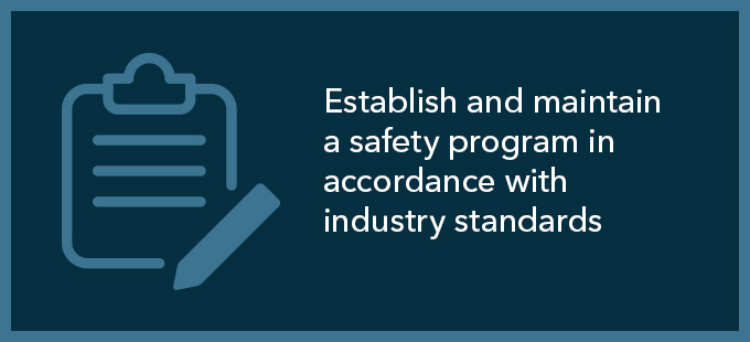 - Establish and maintain a safety program in accordance with industry standards