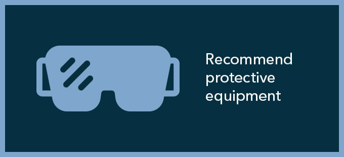 - Recommend protective equipment
