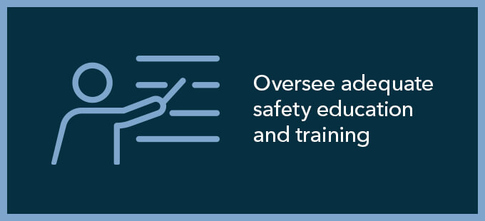 - Oversee adequate safety education and training